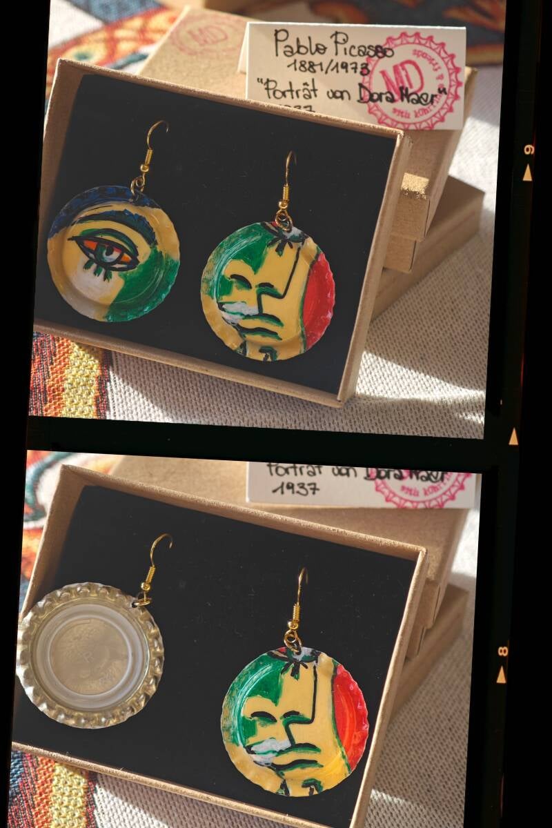 Diese Reihe präsentiert eine Sammlung Kopie von berühmten Kunstwerke. Die Kronkorken sind mit verschiedenen Lacke behandelt und dafür von Rost und Kratzen fest geschützt. Die Ohrhaken sind versilbert 925 und Hypoallergen. ZUM KAUFEN BITTE MERKEN DIE BEZEICHNUNG DEINER LIEBLINGS KUNST-PERLEN UND MIR EINE E-MAIL SCHREIBEN. FIND VOLLSTÄNDIGE ERKLÄRUNGEN AUF DER SEITE "SHOP" 🤗